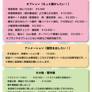 イラストレーター様と提携しているのでLive2D用のイラスト制作、一枚絵からのパーツ分け等もお受けすることも可能です!